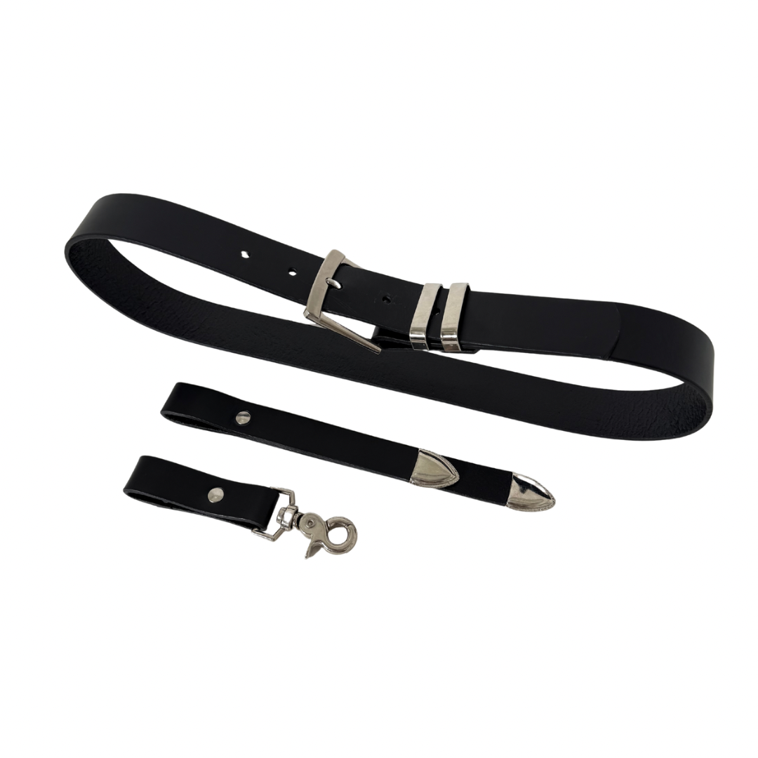 cinturón de 40 con dos accesorios uno decorativo y uno funcional de llavero
