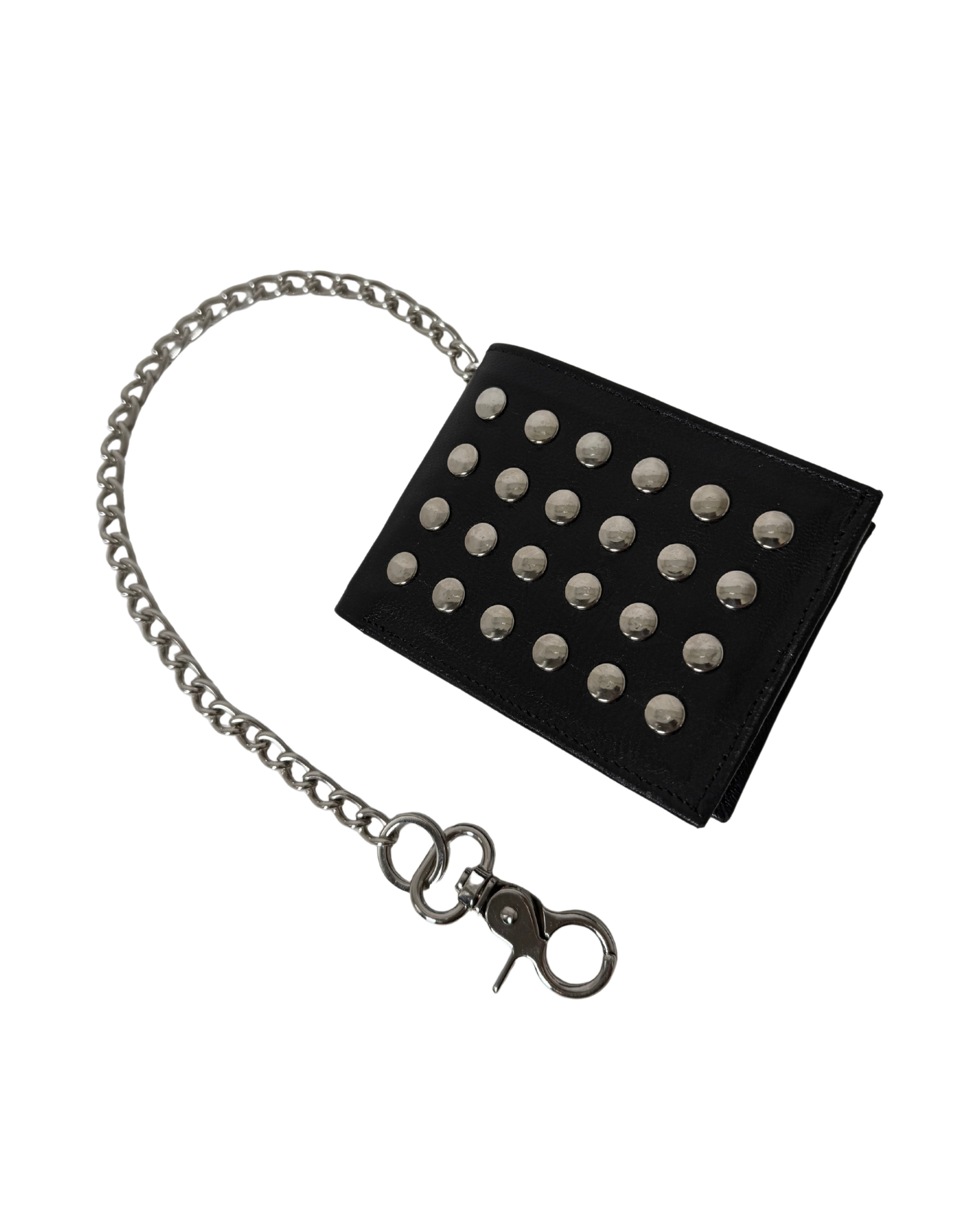 Cartera de piel con remaches redondos y cadena niquel