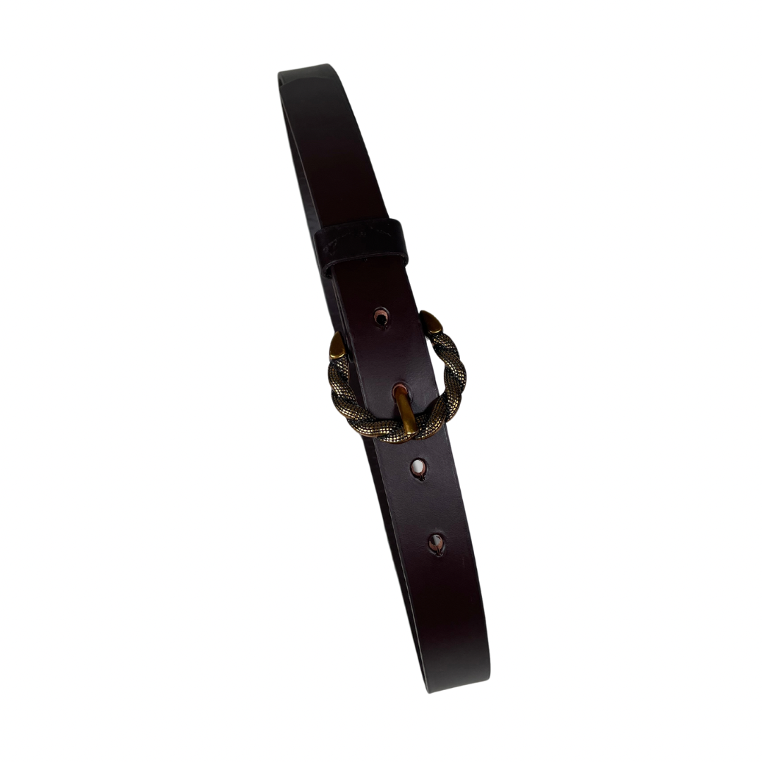 Cinturón en piel genuina de res color negro con un ancho de 25 mm con hebilla dorada de metal con textura de serpiente