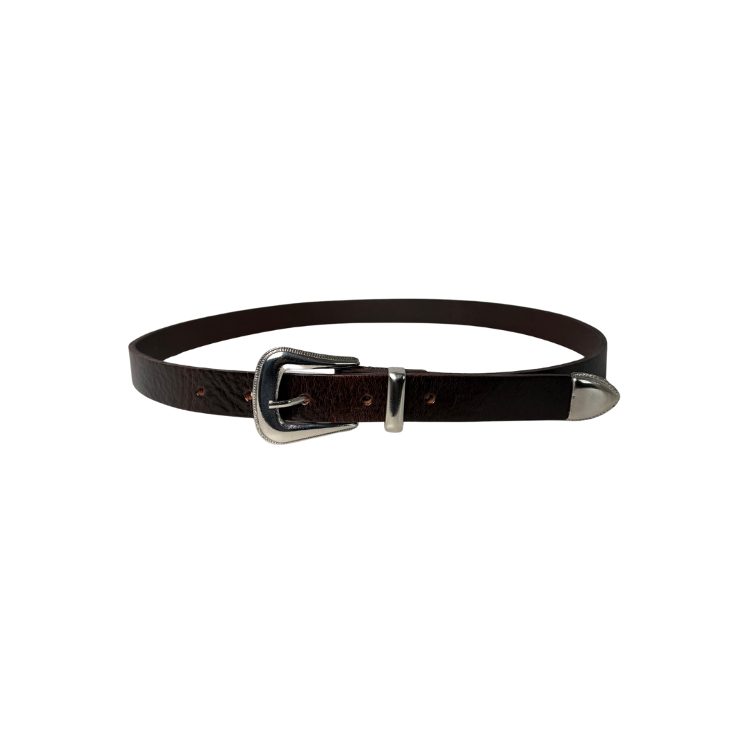 Hecho en piel genuina de res con un acabado desgastado color chocolate